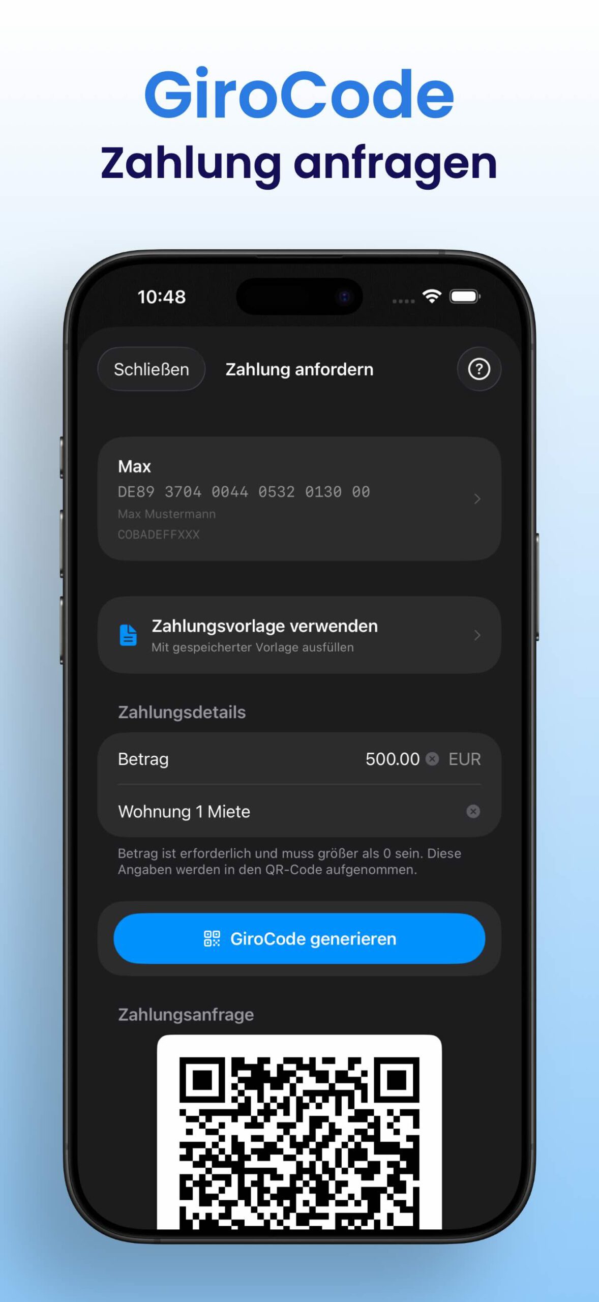 Zahlungen direkt per QR/GiroCode anfordern – schnell, sicher und unkompliziert.